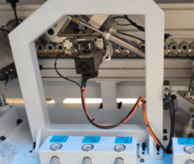 2 rodillos de presión para fortalecer la adherencia del canto al tablero con limpieza automática.