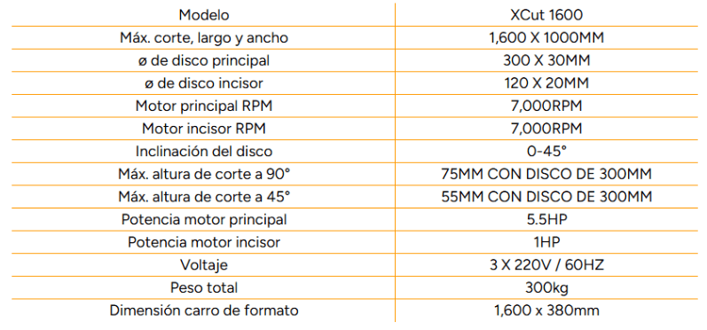 Máquina de corte industrial de alta precisión y robustez, con cuerpo en acero soldado, unidad de sierra en hierro fundido con elevación eléctrica, eje silencioso y mesa deslizante tipo Altendorf. Incluye guía de inglete, panel digital, tope paralelo con microajuste y opciones de seguridad y visualización digital para cortes transversales y en bisel.